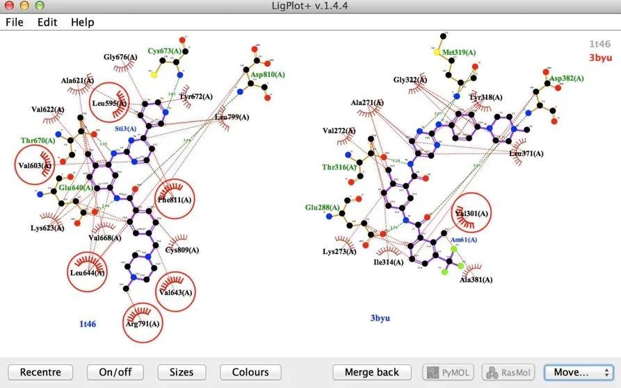 Analysis of Imatinib with homologues c-abl (2hyy) and c-kit (1t46).